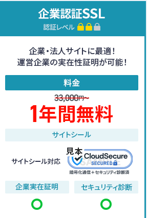 通常41,800円の企業認証SSLも《無料》で利用開始できる