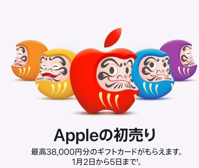 Appleの初売り最高38,000円のギフトカードもらえる