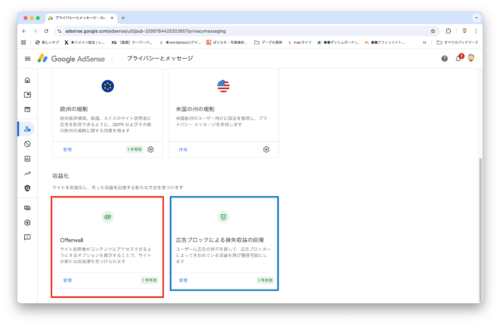 グーグルアドセンスにログイン>プライバシーとメッセージをクリックすると以下の画面が表示されます。