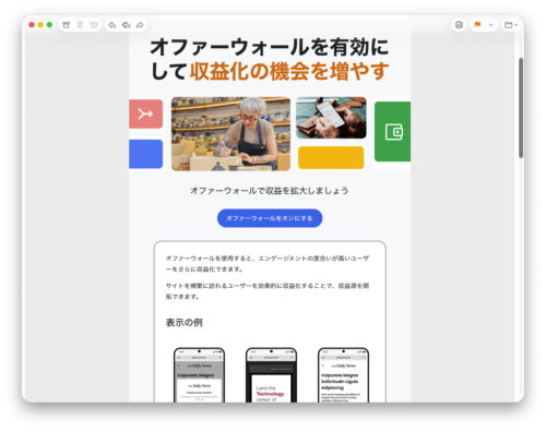 GoogleAdSenseグーグルアドセンスにはofferwalと言う機能があるようです。l