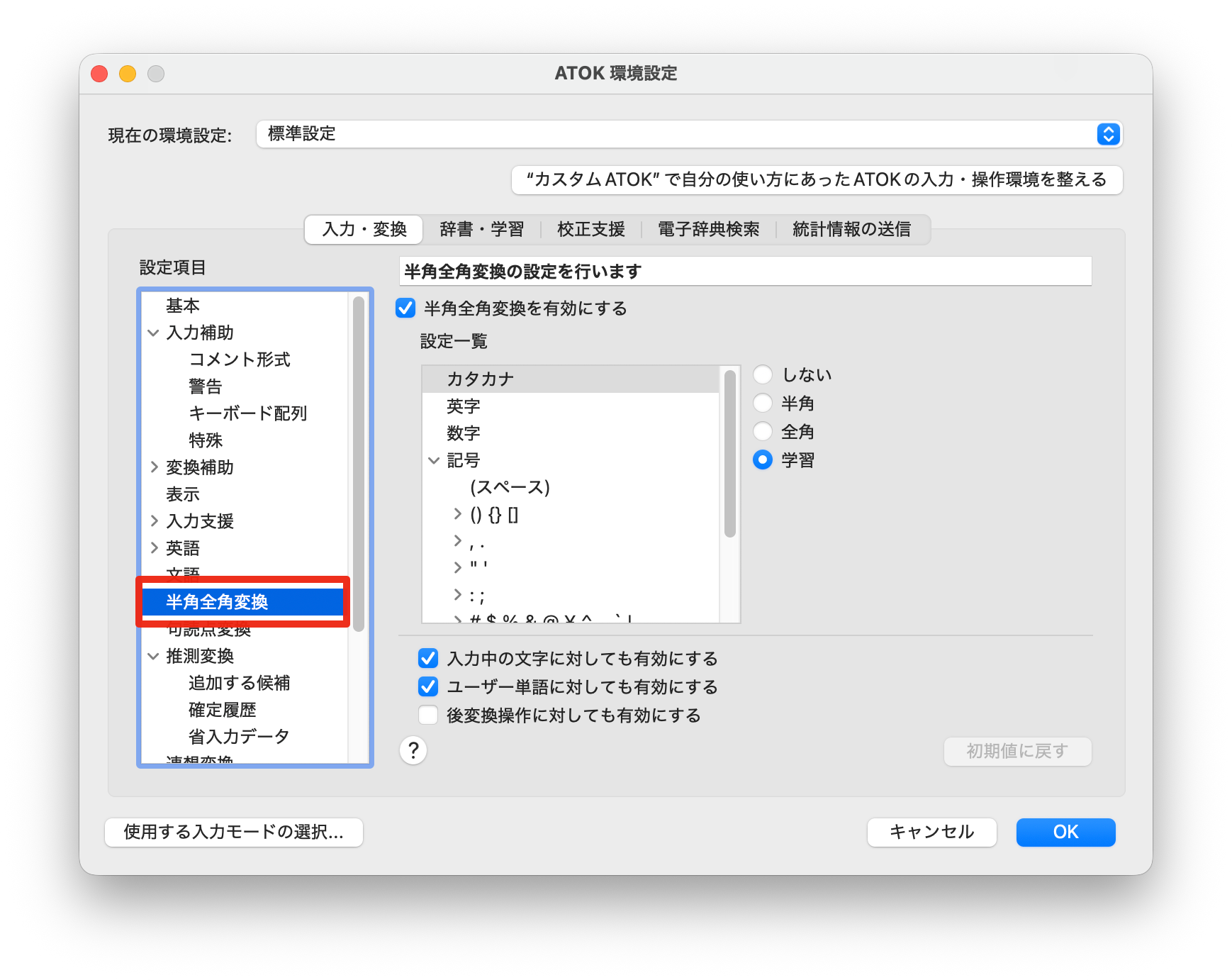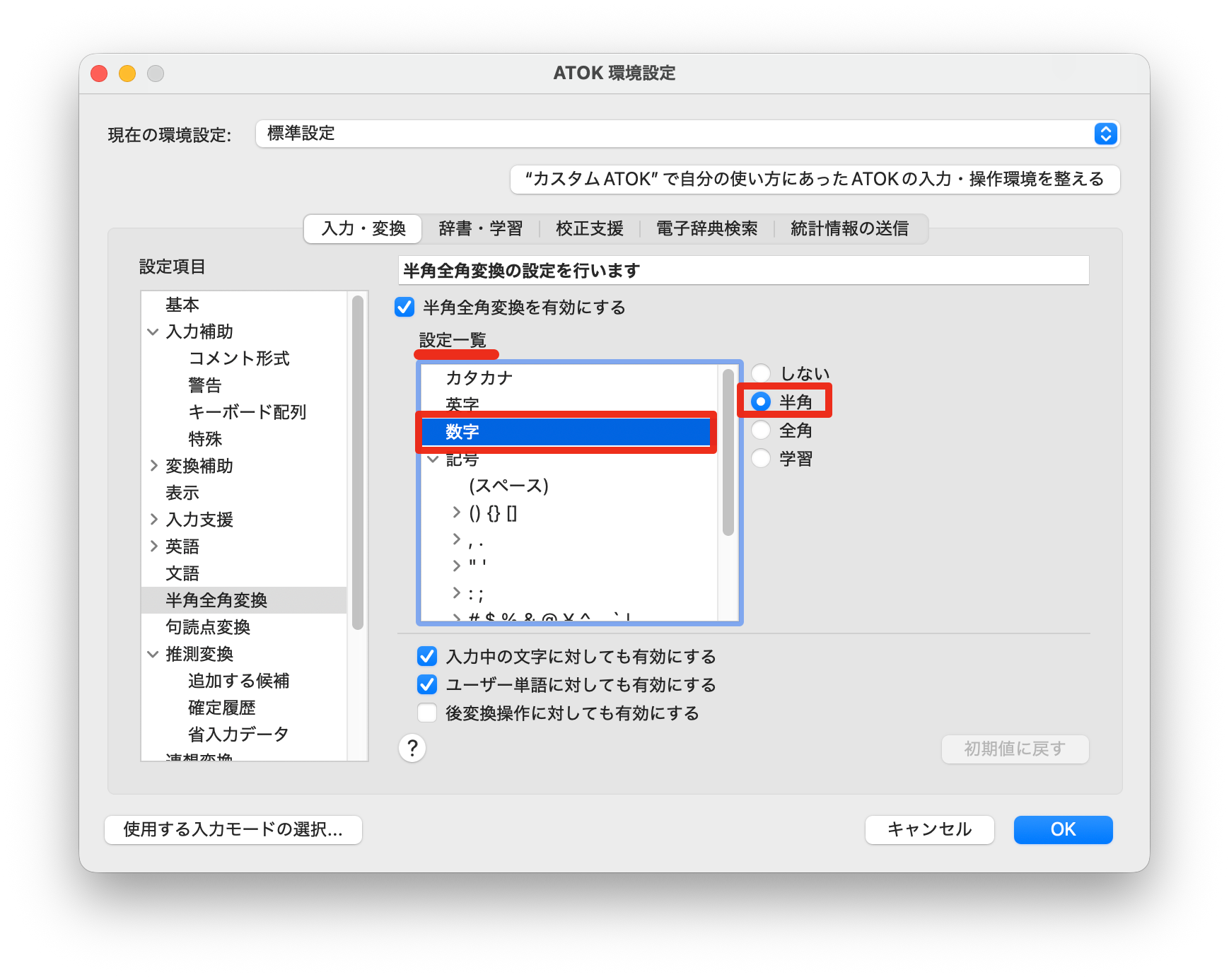 mac標準の日本語変換では、数字を入力すると常に半角だったので、その使い方に慣れていたことから