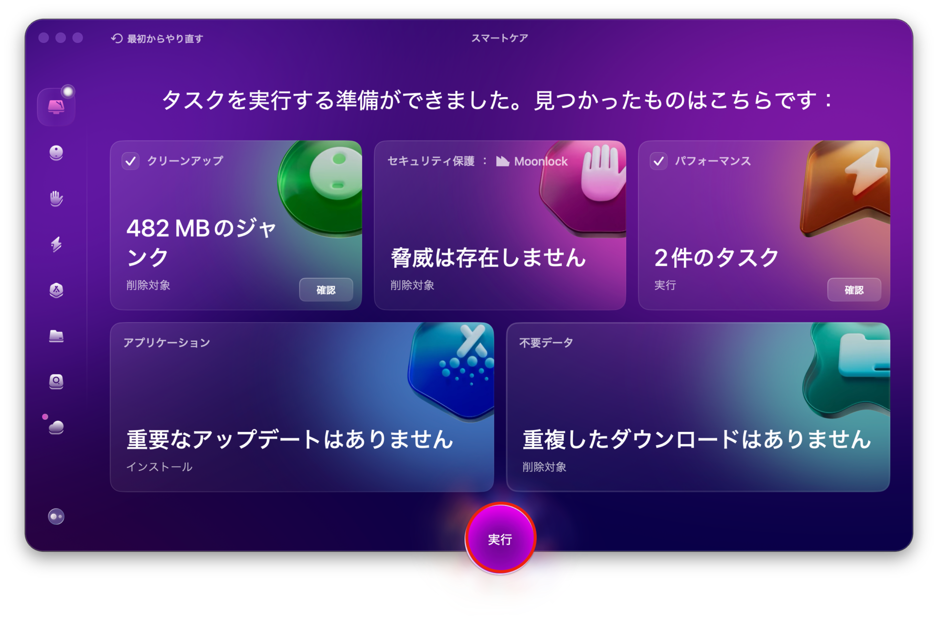 CleanMyMacクリーンマイマックの処理手順です。3ステップです。