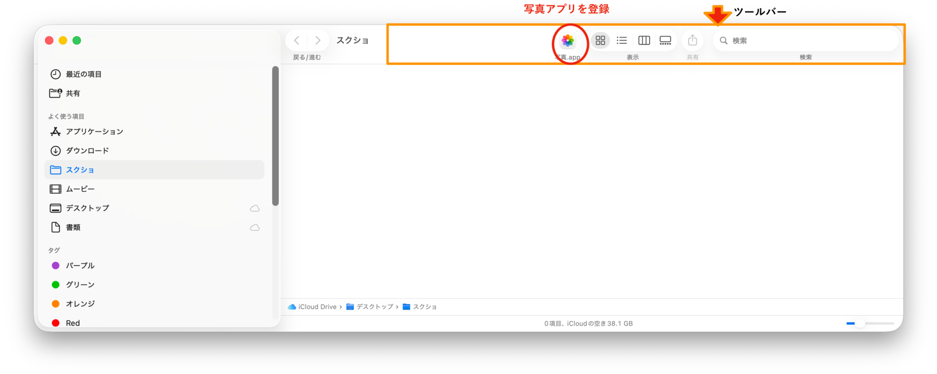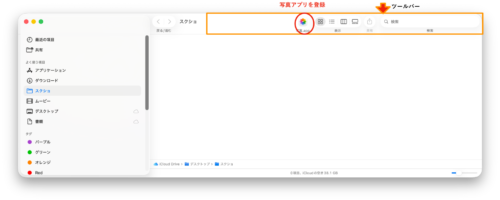 macのFinderファインダのツールバーにアプリを登録する手順
