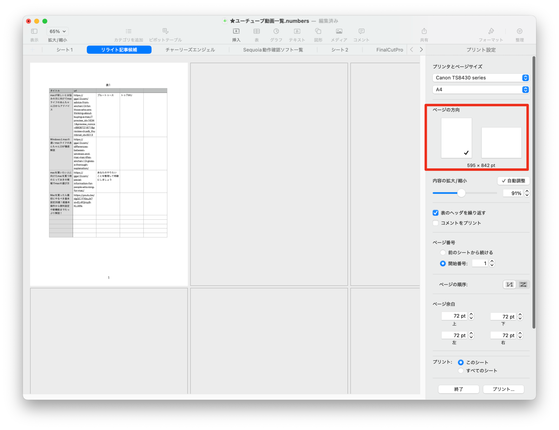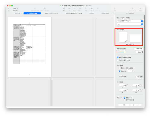 macのNumbersナンバーズの使い方㉔macのNumbersナンバーズでページの方向と上下左右のページ余白を設定する手順