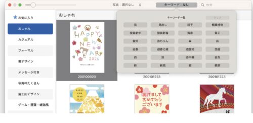 数多くの中から好みの年賀状を探してくれるのでらくらくです。