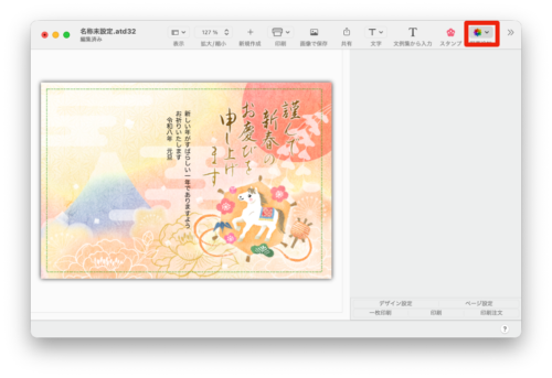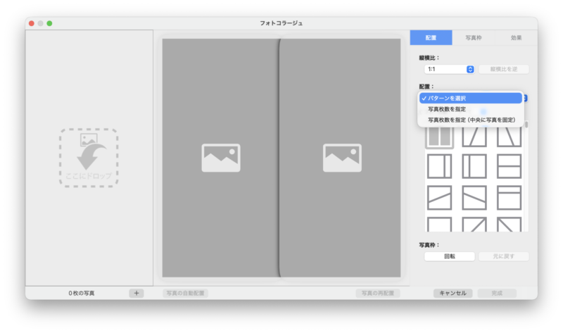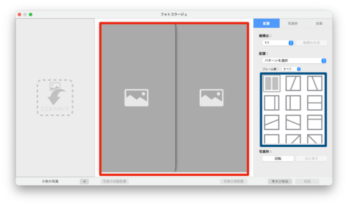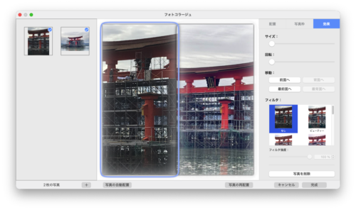 宛名職人のデザイン画面の上部にある写真の追加アイコンにあるフォトコラージュは、優れていて、かなり高機能です。