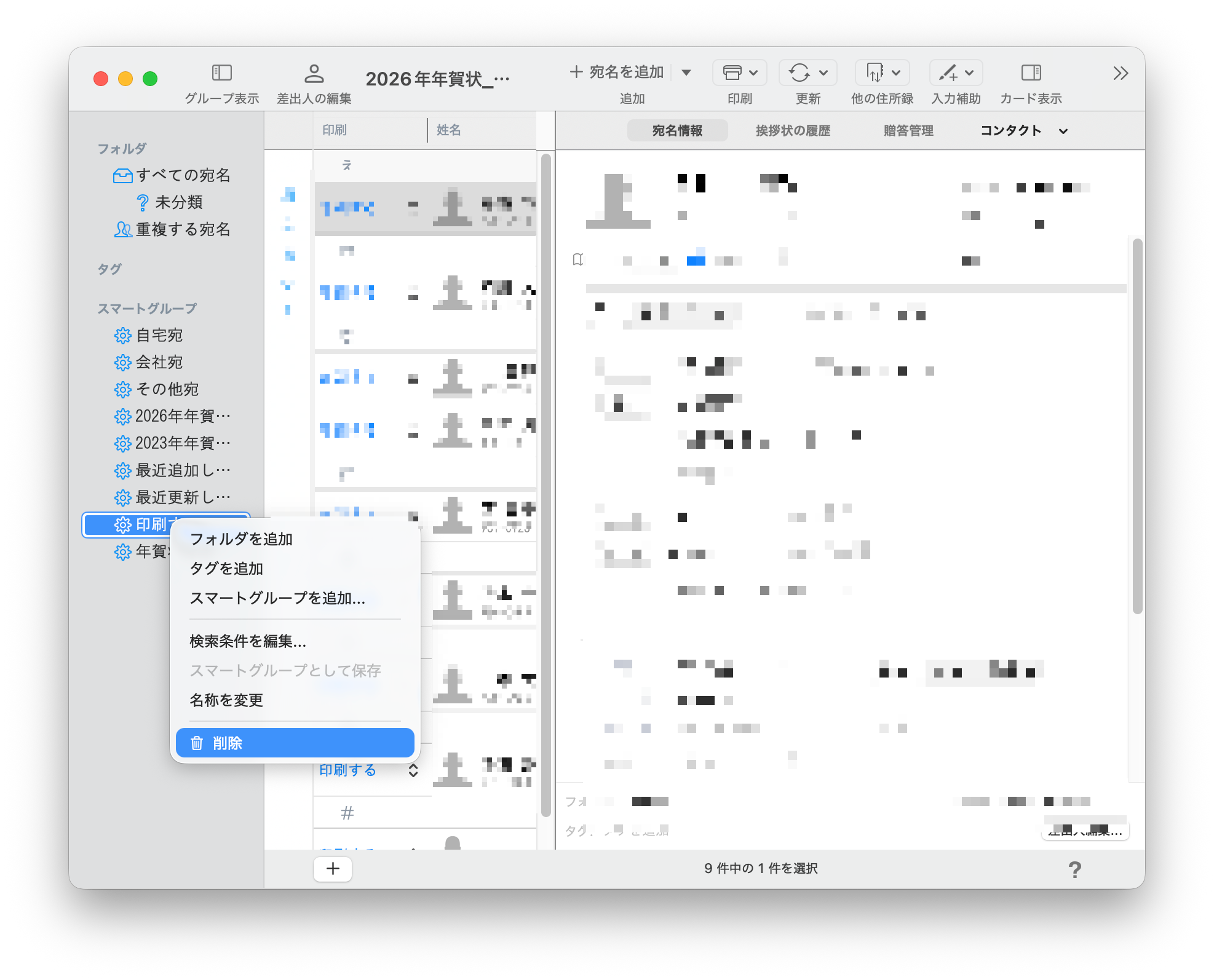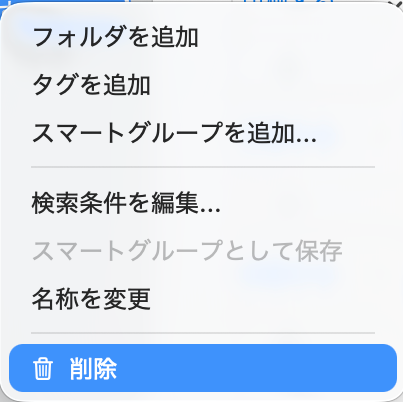 削除するスマートグループを選択して、右クリックします。