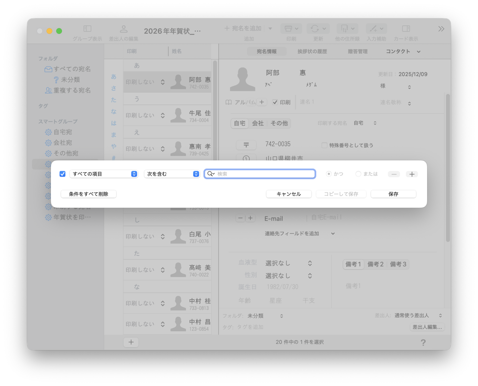 宛名職人で検索条件は、スマートグループと言います。