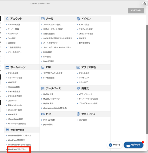 エックスサーバーさんのサーバーパネルの機能で救われました。