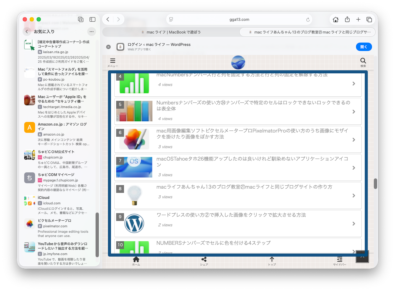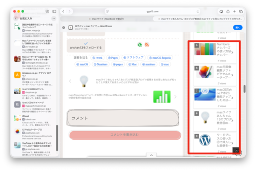 ワードプレスは、モバイルと認識しているため、赤枠のウィジェットを右端に表示することができないことから、画面の下に表示されます。青枠個所のとおりです。