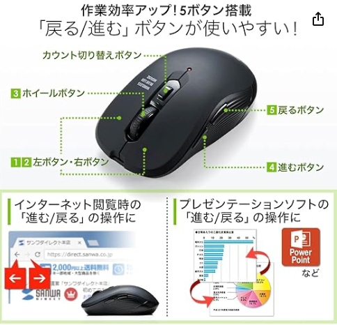 サンワダイレクト ワイヤレスマウス type-c 無線マウス 5ボタン