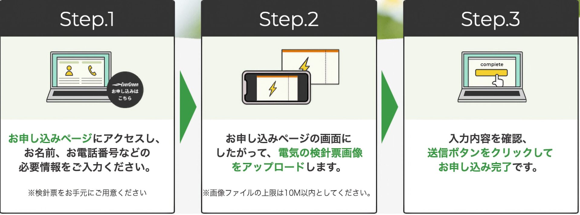 EverGreen の電気へは、WEB からお申し込みが可能。