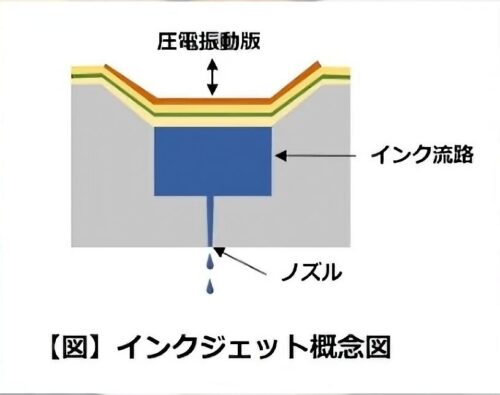 インクジェットプリンタは、ノズルから紙にインクを噴射して印刷する構造です。