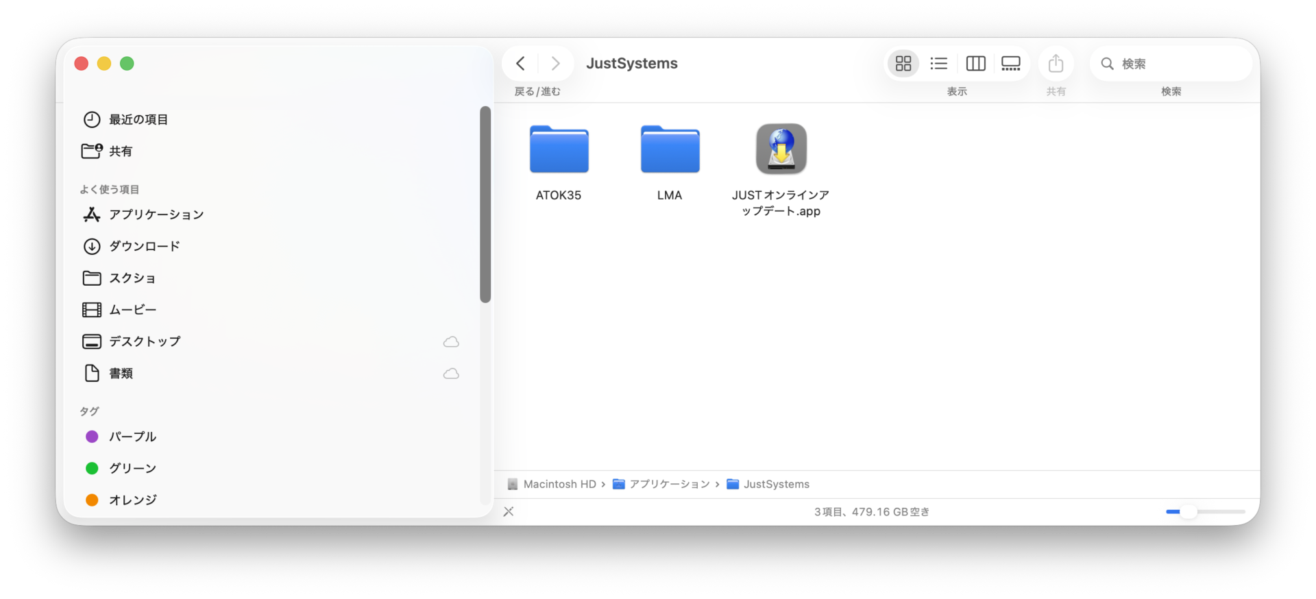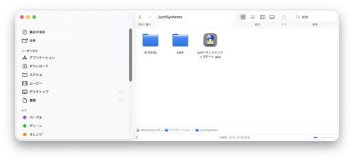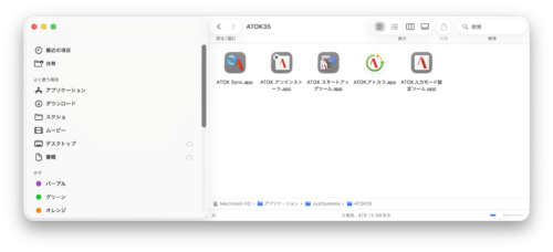 ATOKエイトックをインストールしたらmac内にできるアイコン サイト内検索 日本語入力 2025.10.18 この記事は約1分で読めます。 こんにちは。 macライフのあんちゃん13です。 アプリケーションフォルダにJUSTSystemフォルダ JUSTSystemフォルダを開くと ATOK35とLMAフォルダがあります。 ATOK35フォルダを開くと。 ALMAフォルダを開くと。 個別の機能は、今は、よく分かりません。 Bluesky