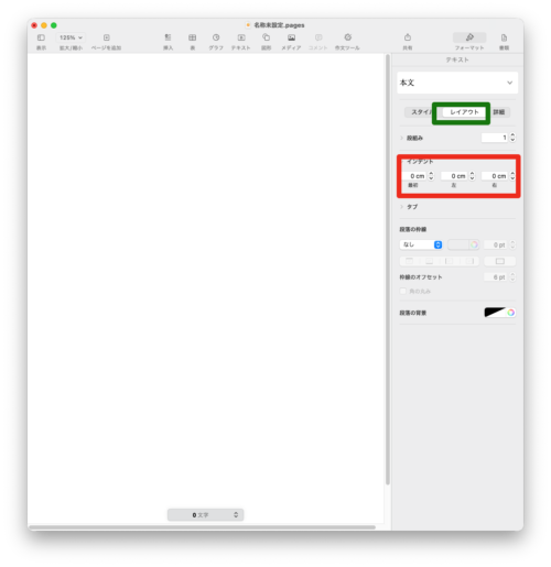 pagesページズの最新版では、インデント設定の仕様が変わったようです。
