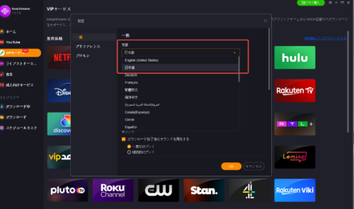 言語の設定画面が表示されますので、「日本語」を選択して、右下のオレンジの「OK」ボタンをクリックします。