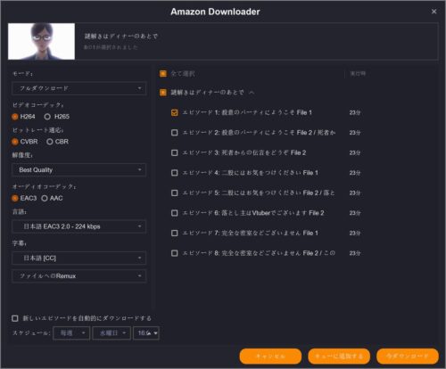 エピソードが表示されますので、ダウンロードしたいエピドートを選択して、ダウンロードボタンをクリックします。