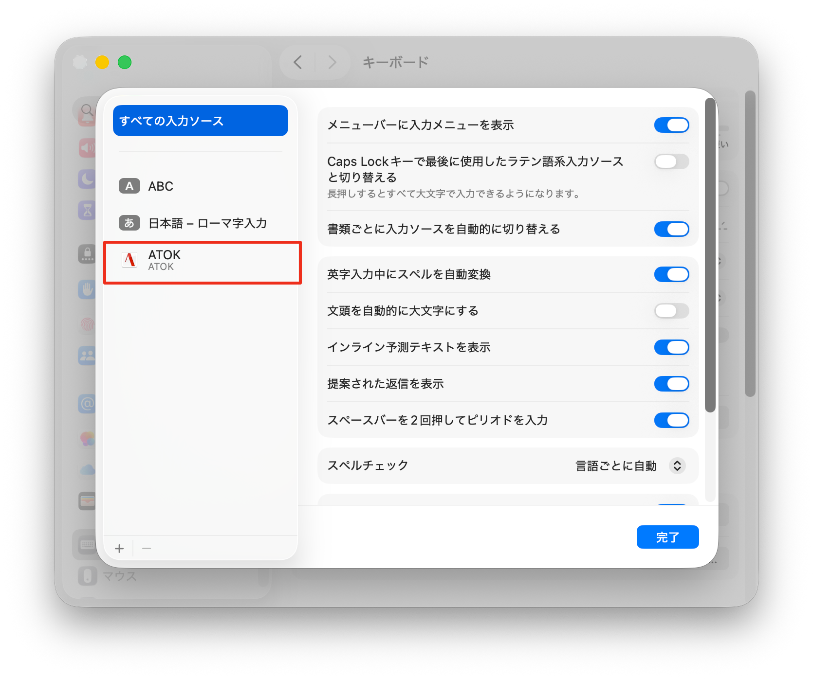 macでATOKエイトックを使うには、入力ソースの追加が必要です。