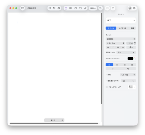 macのPagesページズ15.1の画面