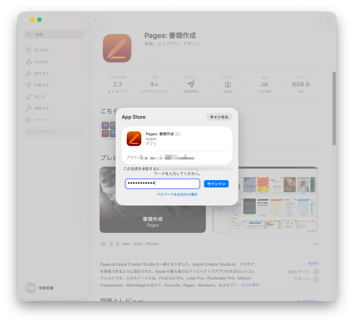 Pages 15.1は、既存の14.xからのアップデートではなく、App Storeから新しいアプリとしてダウンロードする必要があります。