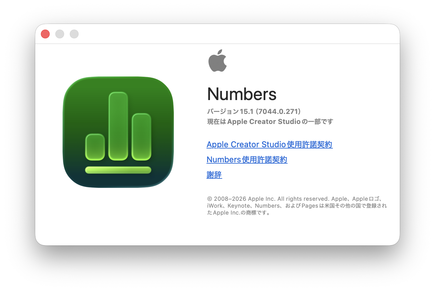 Appleは2026年1月末(現地時間1月28日)、Pages、Numbers、Keynoteのメジャーアップデートとなるバージョン15.1をリリースしました。このバージョンは「Apple Creator Studio」という新しいクリエイティブ・エコシステムの一部として位置づけられており、主にサブスクリプションサービスによる機能強化が行われています。