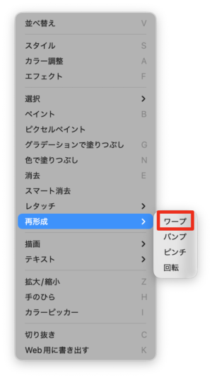 メニュー>ツール>再形成>ワープ