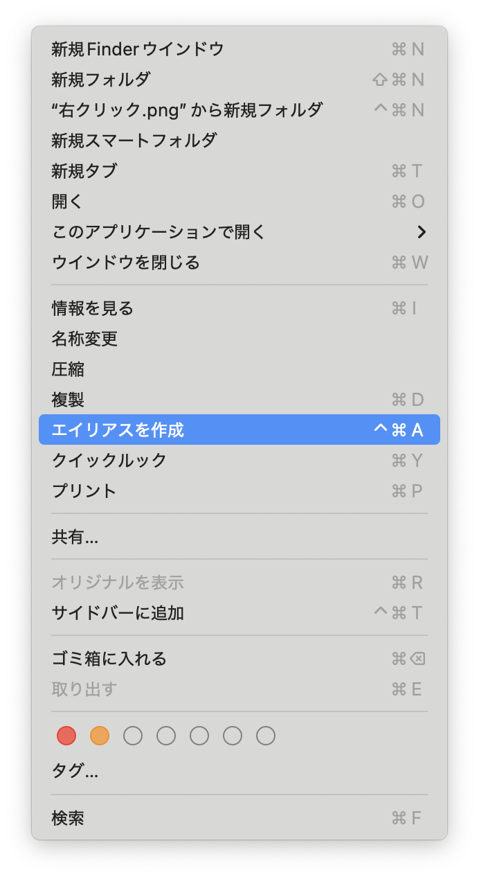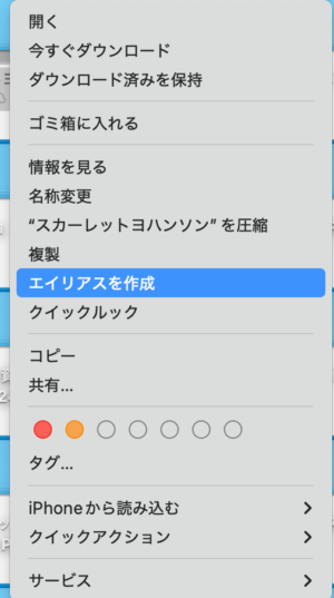 右クリックしてメニューから「エイリアス作成」をクリックするか