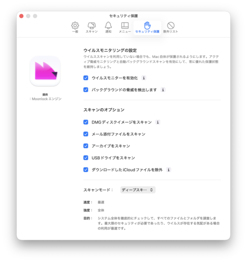Moonlockエンジンは、CleanMyMac Xの全てのウイルス対策ツールを強化する為のテクノロジーです。