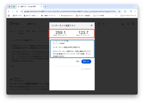 速度テストの結果が表示されます。